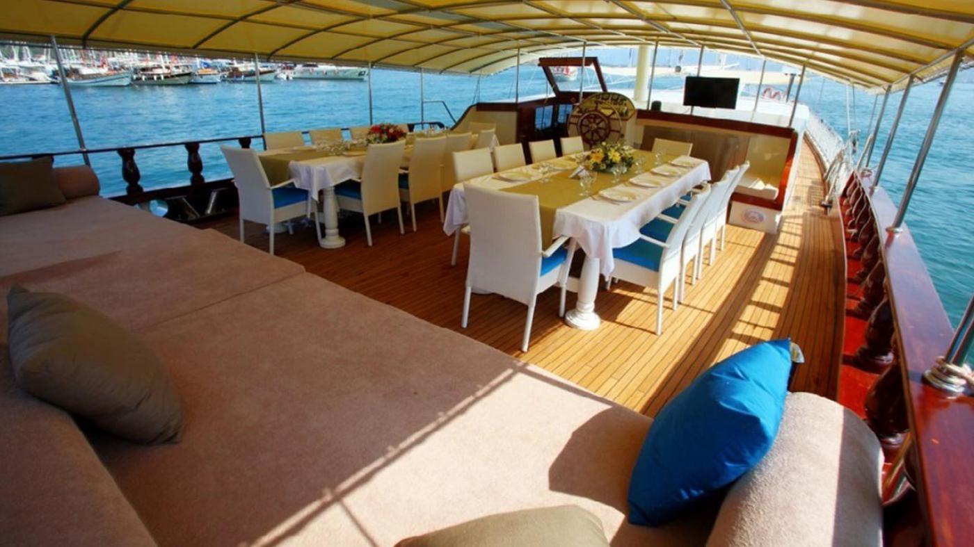 There are enough sun bath cushions, chairs and services for every single guest. This yacht that is built to make our guests live the comfort, the luxury and the serenity at the same time, can reach a speed up to 11 nautical mile.