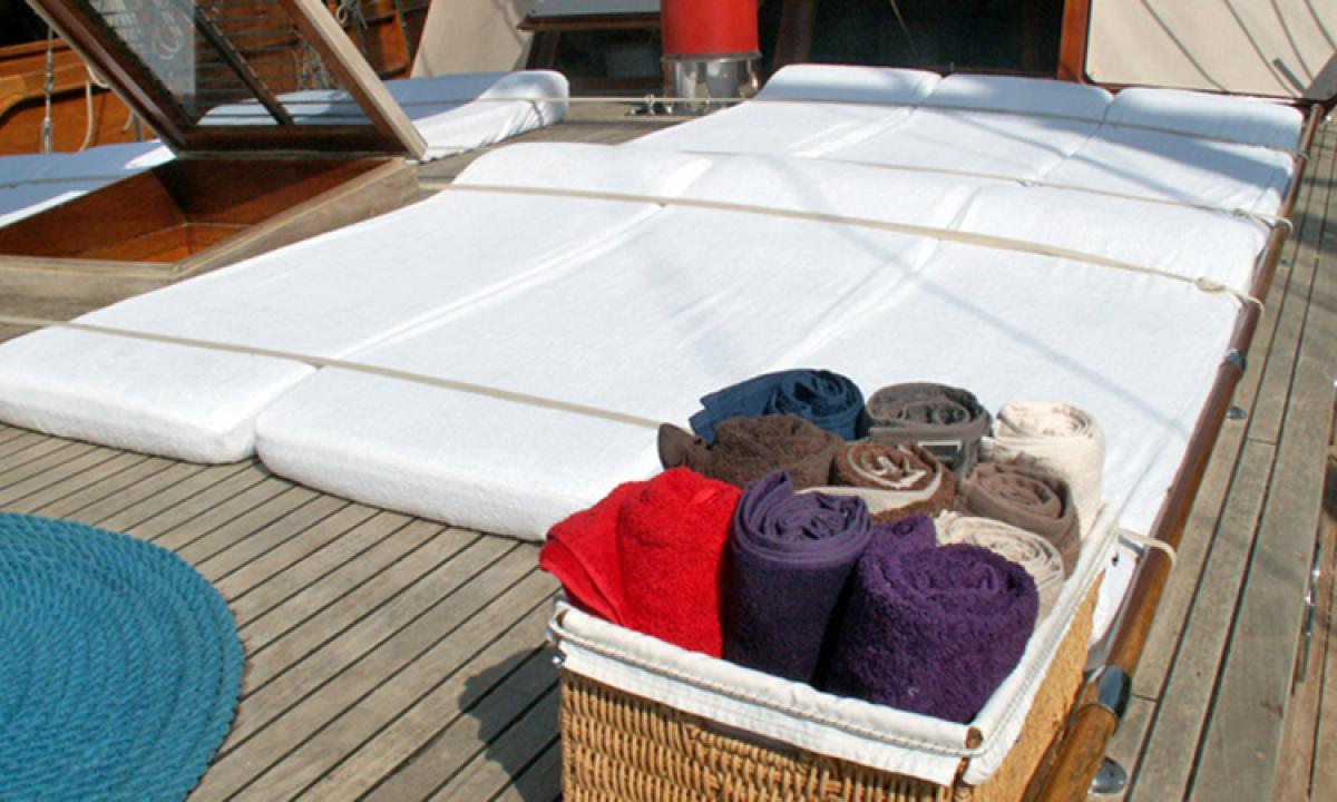 There are enough sun bath cushions, chairs and services for every single guest. This yacht that is built to make our guests live the comfort, the luxury and the serenity at the same time, can reach a speed up to 10 nautical mile.