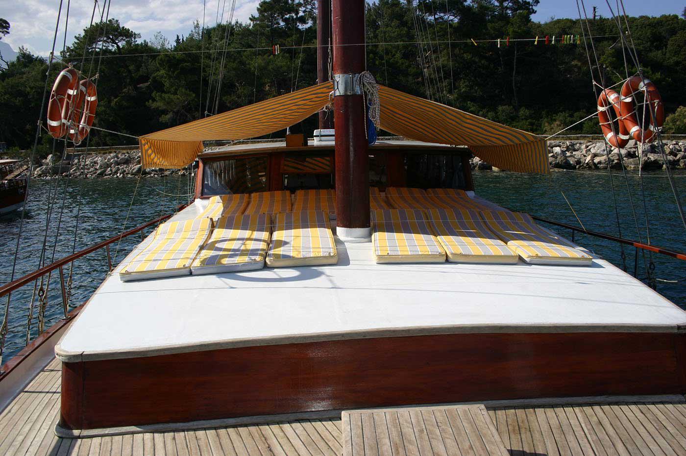 There are enough sun bath cushions, chairs and services for every single guest. This yacht that is built to make our guests live the comfort, the luxury and the serenity at the same time, can reach a speed up to 8 nautical mile.