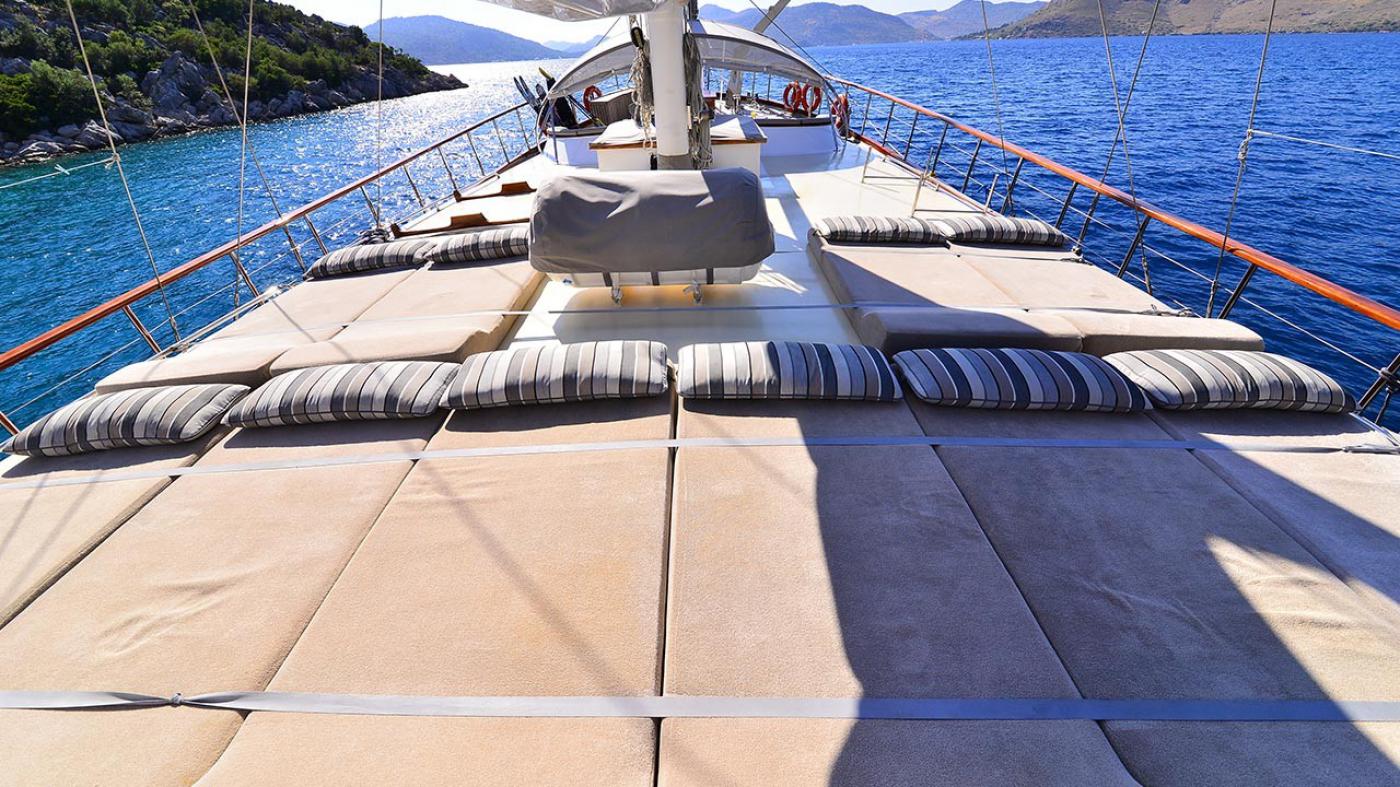 Guletimiz tam donanımlı mutfak ve salonun dışında konforlu oturma, geniş güneşlenme ve yaşam alanlarına sahiptir. Personel için ayrı dinlenme alanları bulunmaktadır.