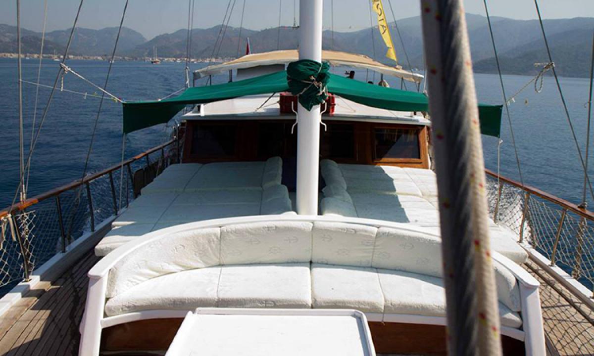 Her misafire yetecek kadar güneşlenme minderi, sandalye ve servis bulunmaktadır. Misafirlerimize konforu, lüksü ve dinginliği aynı anda yaşatmak için inşa edilen bu yat, 10 deniz miline kadar hıza ulaşabilmektedir.
