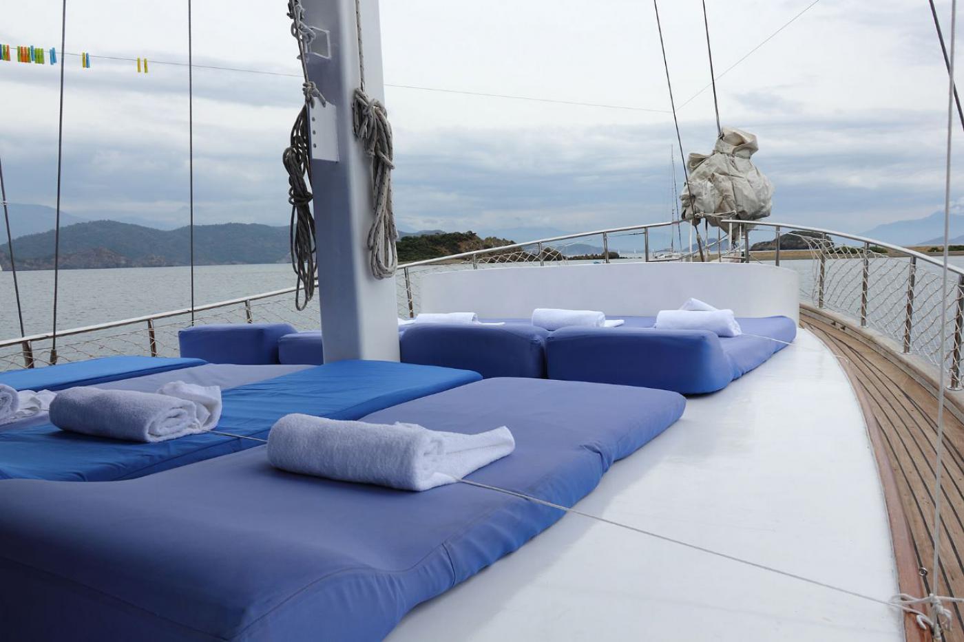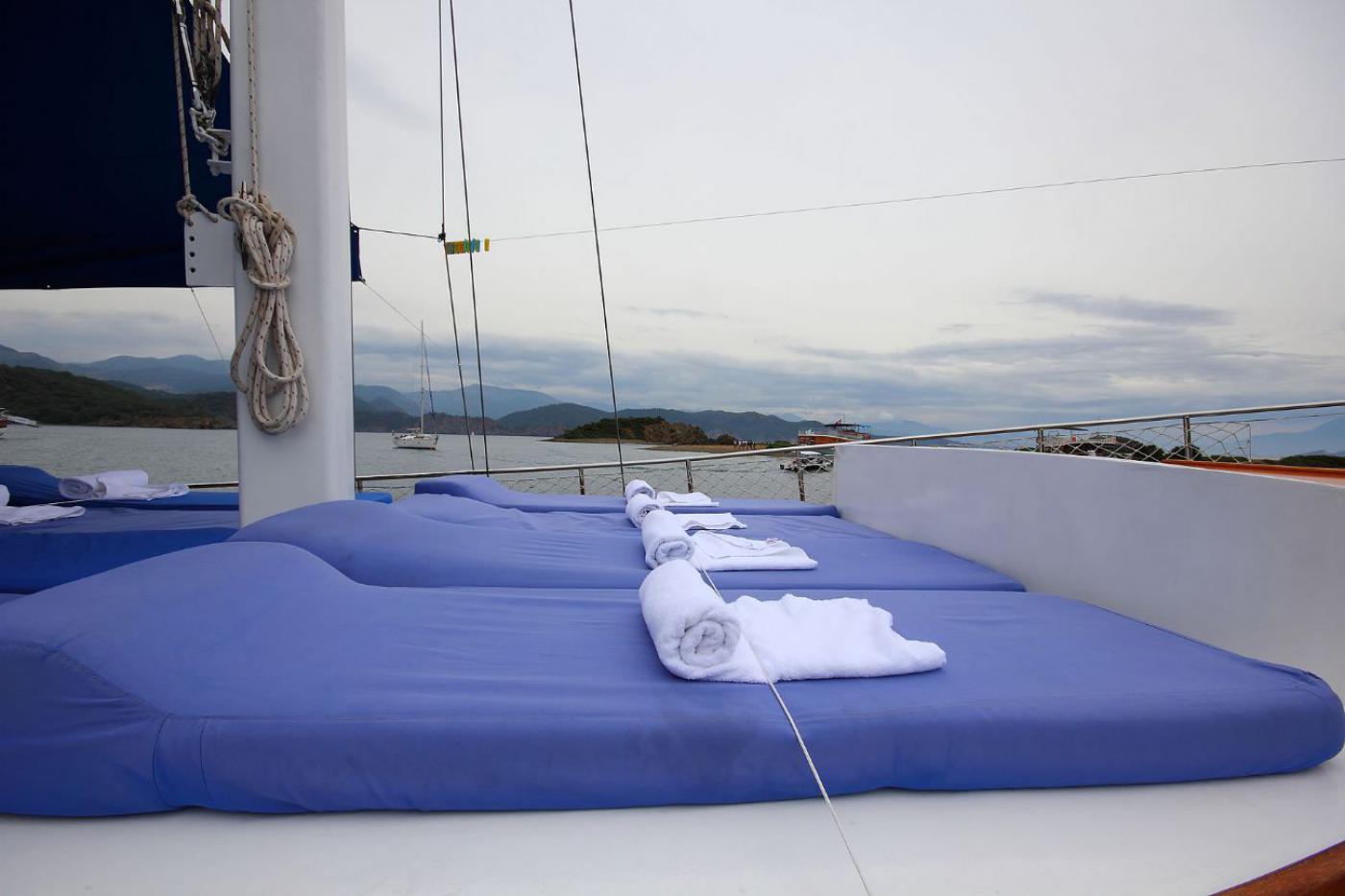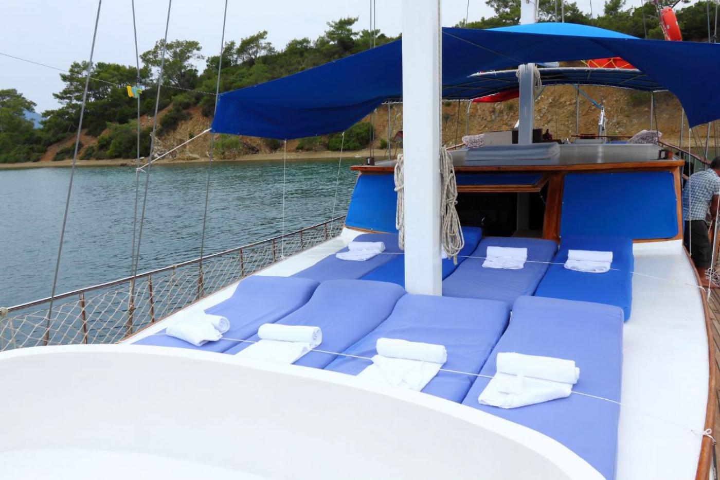 Guletimiz tam donanımlı mutfak ve salonun dışında konforlu oturma, geniş güneşlenme ve yaşam alanlarına sahiptir. Personel için ayrı dinlenme alanları bulunmaktadır.