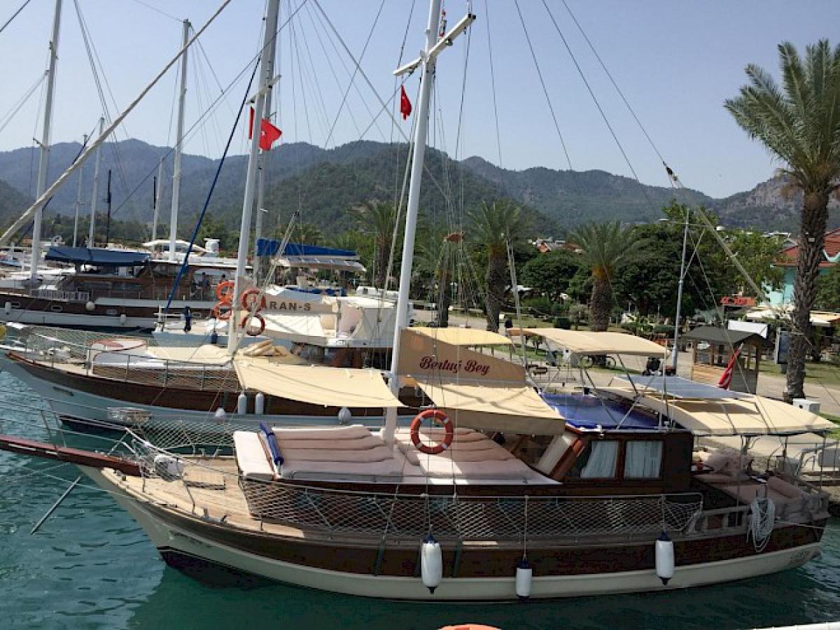 The Gulet Bertug Bey was built in 2004. This boat that is 15 m long and 5 m large is providing Blue Cruise services to our dear guests with its 2 crew members.