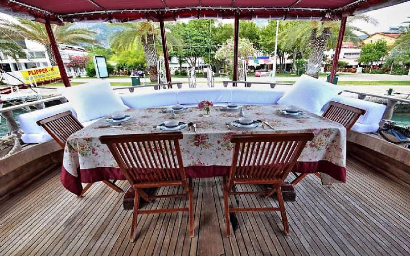 Guletimiz tam donanımlı mutfak ve salonun dışında konforlu oturma, geniş güneşlenme ve yaşam alanlarına sahiptir. Personel için ayrı dinlenme alanları bulunmaktadır.