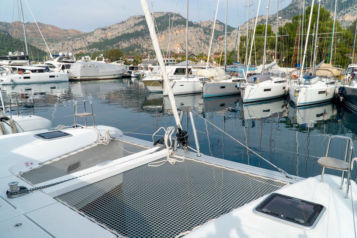 Mavi yolculuğuna yelken keyfini de eklemek isteyen misafirlerimizin ilk tercihlerinden biri olan katamaranızmız 2 personeliyle sizleri ağırlamaktadır. 4 kabini ve her kabininde kendine ait bulunan klima ve duşuyla konforunuz için bütün detaylar düşünülmüştür. Salonda geniş ve rahat oturma alanları bulunmaktadır.